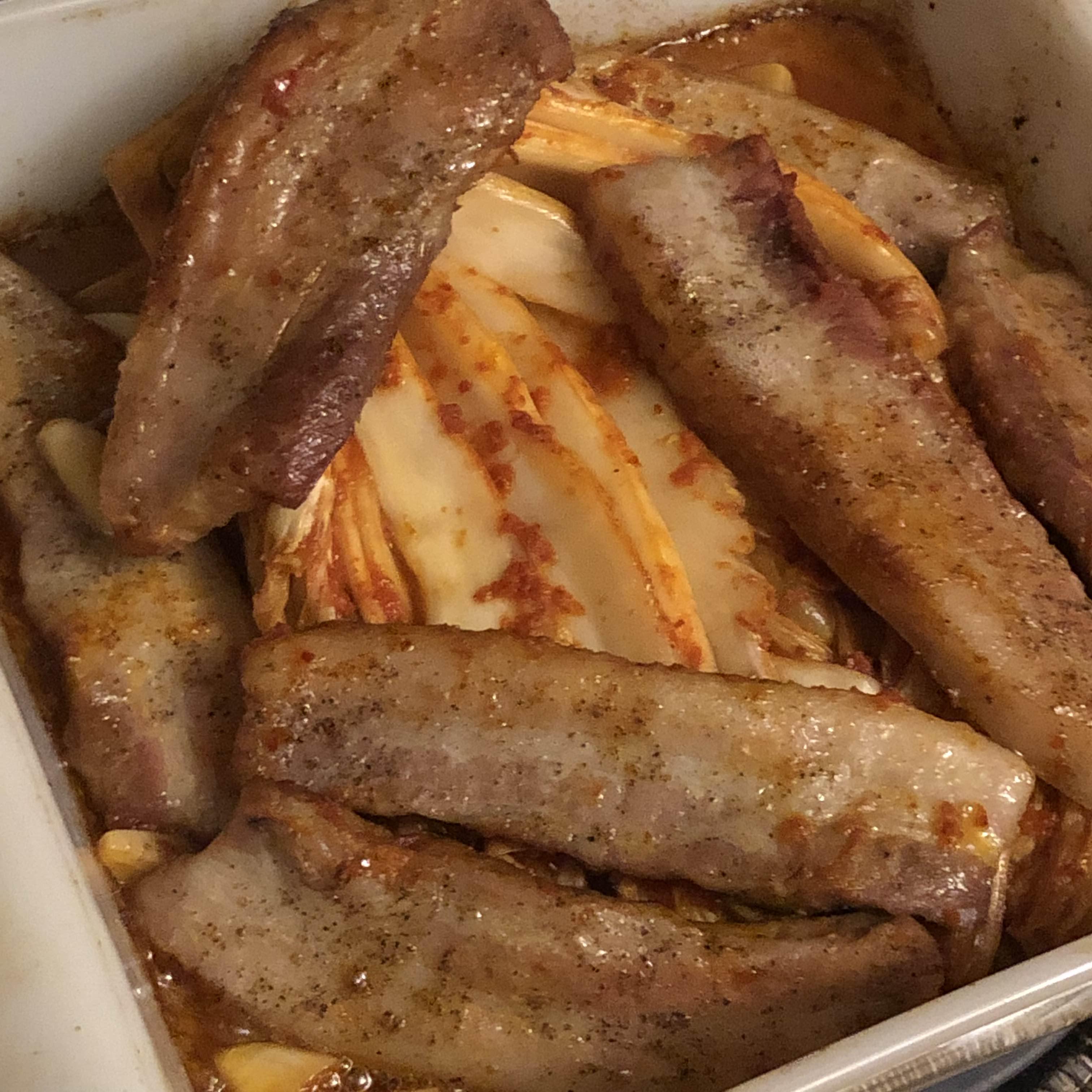 이게 오븐에서 서서히 더 익는지(?) 담근지 얼마 안되었는데도 벌써 꽤 신김치 맛이 났다
